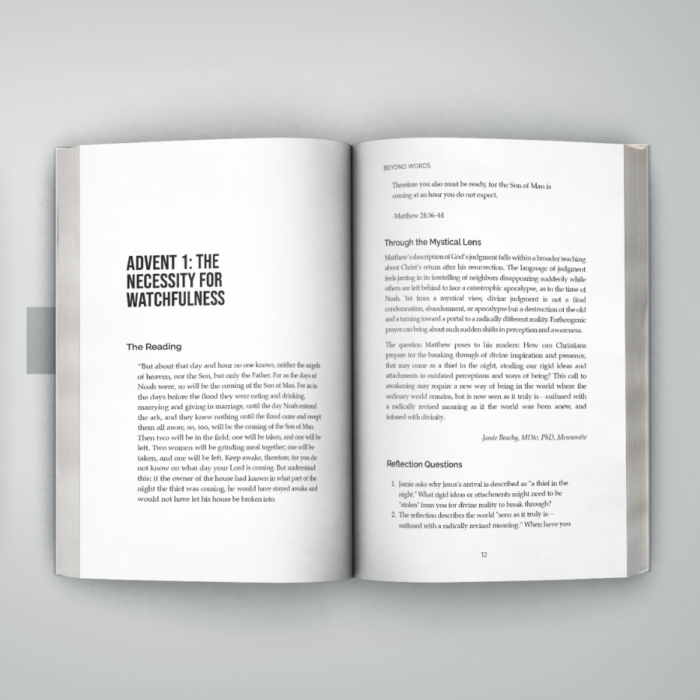 Beyond Words is a groundbreaking 52-week devotional for Christians, spiritual explorers, and anyone integrating mystical or psychedelic experiences within a life of faith. Following the Year A lectionary, this companion offers weekly Gospel reflections written through what contributors call “the mystical lens”—a way of seeing Christ that honors both ancient Christian wisdom and contemporary spiritual awakening.